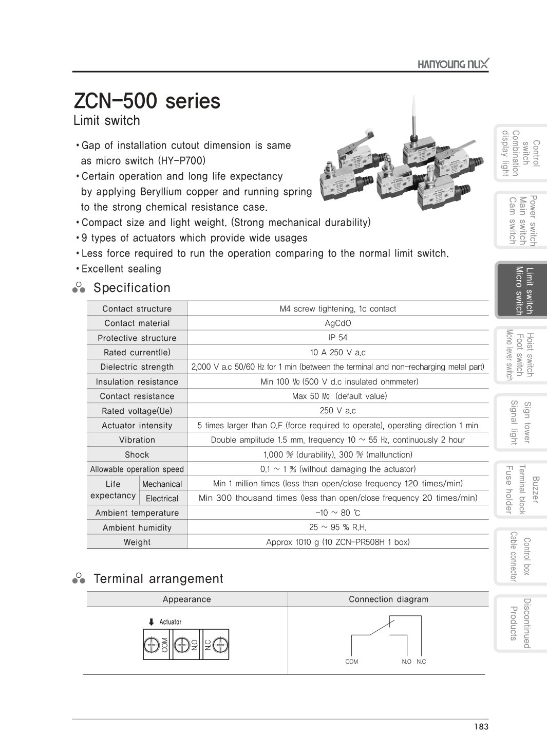 Công tắc hành trình mini ZCN-500 | Hanyoung NUX | Catalogue