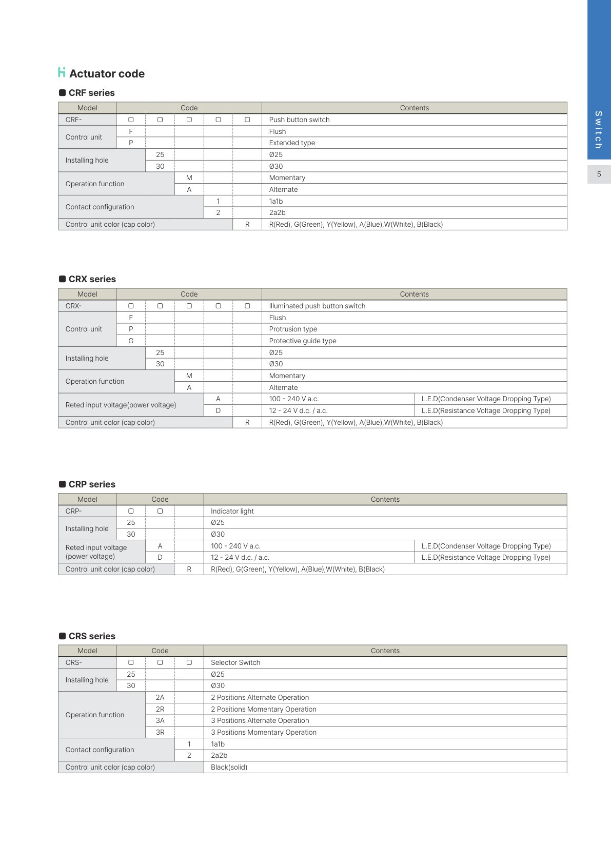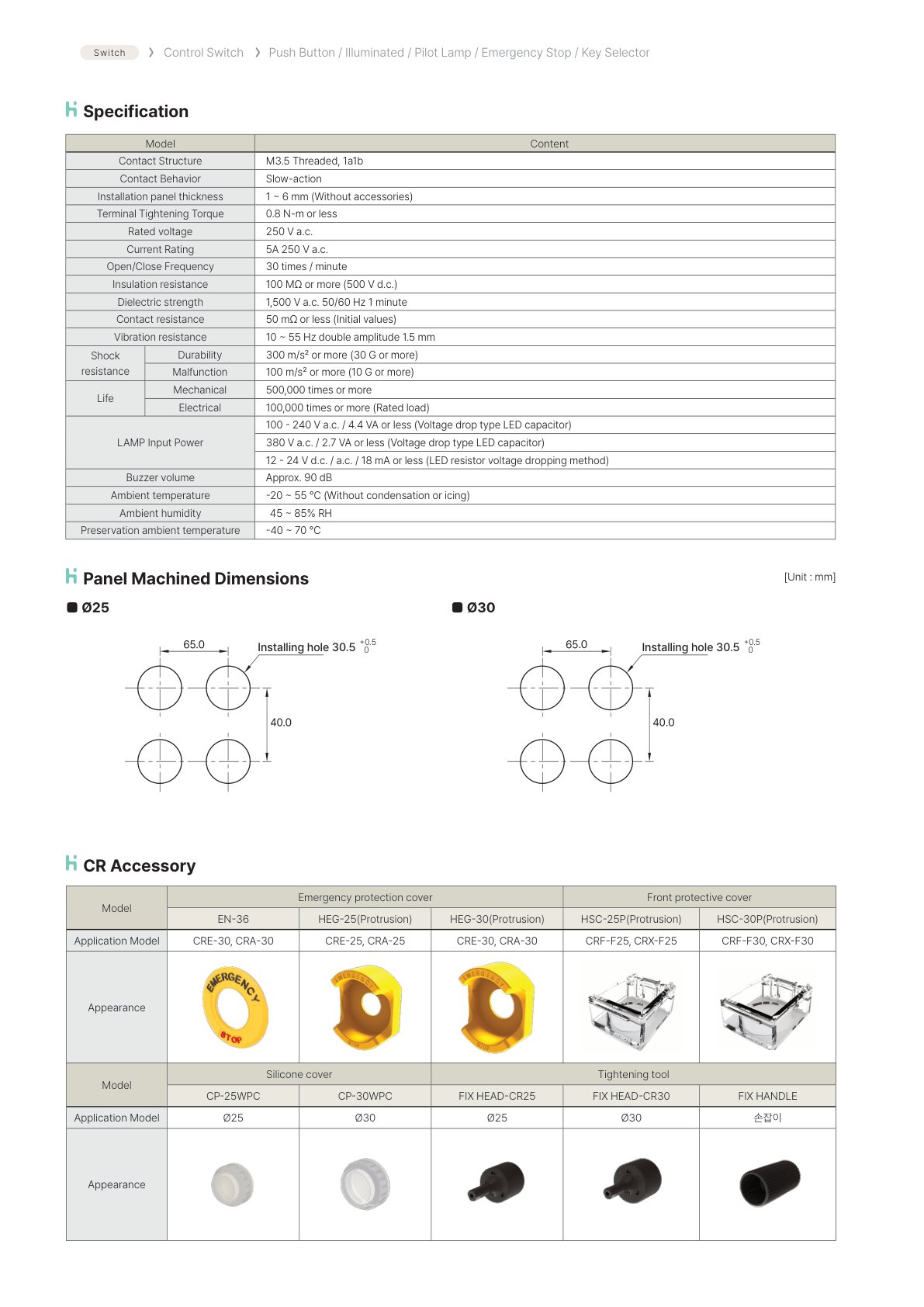 Nút nhấn – Đèn báo – Dừng Khẩn CR-Series | Hanyoung Nux | Catalogue