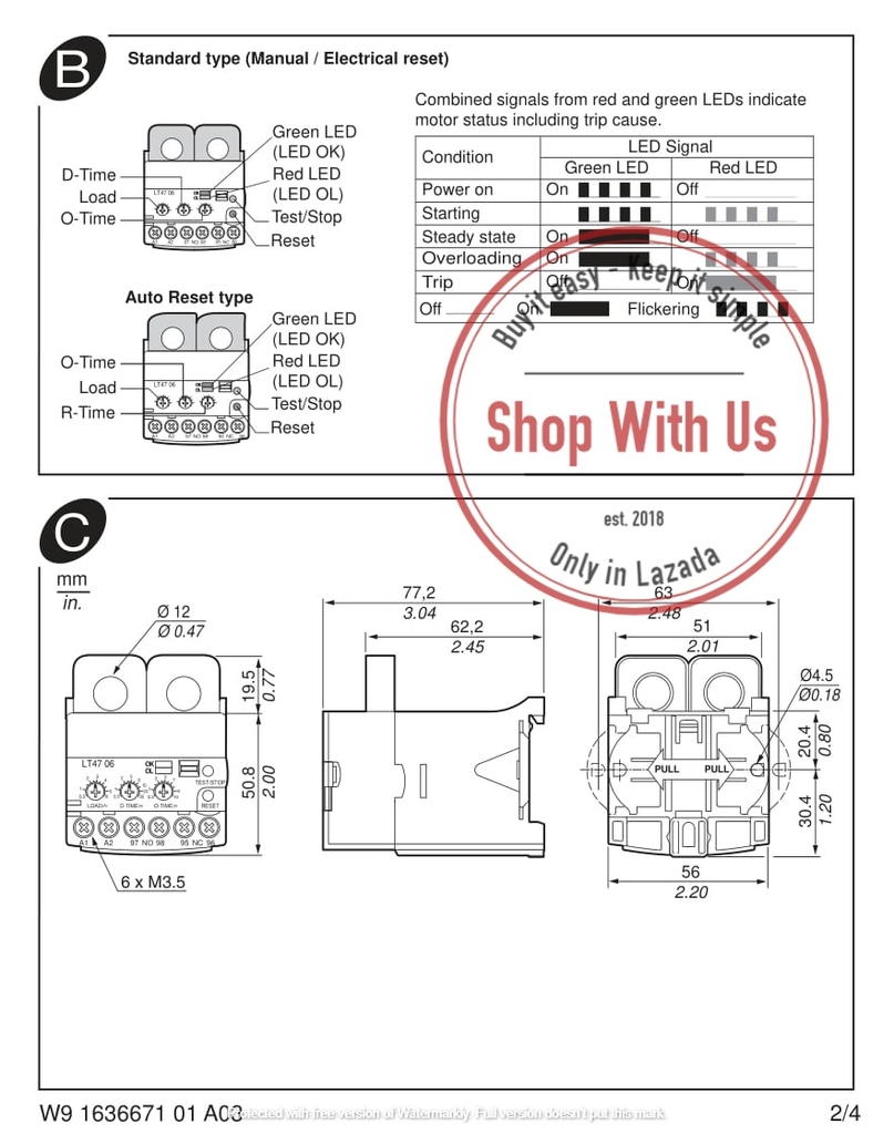 LED báo trạng thái hoạt động / ngắt lệnh (Power / Trip) | |