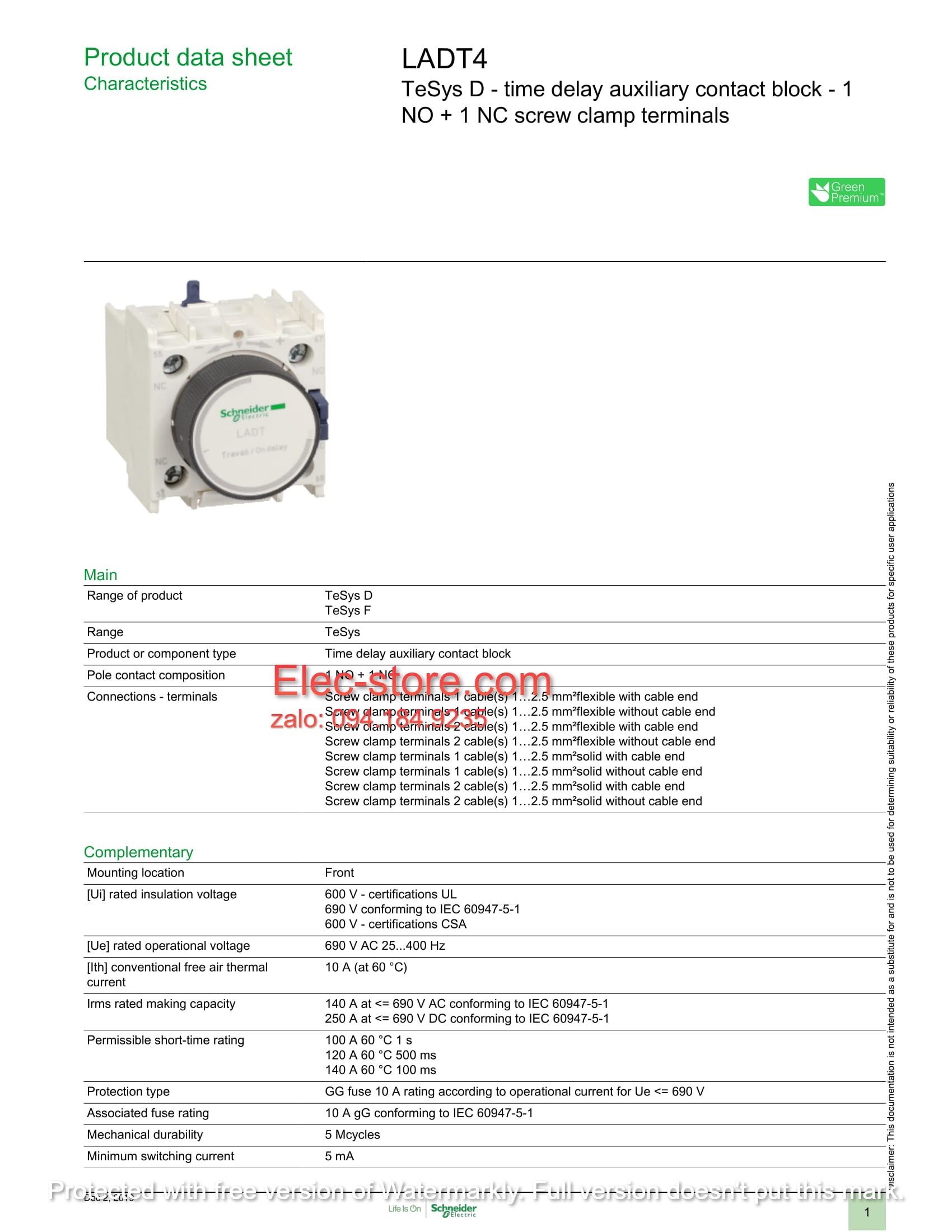 - Tiếp điểm: 1 NO + 1 NC