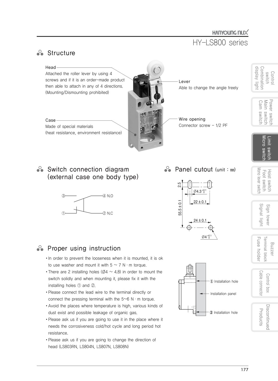 Limit Switch HY-LS800 | Hanyoung NUX | Catalogue