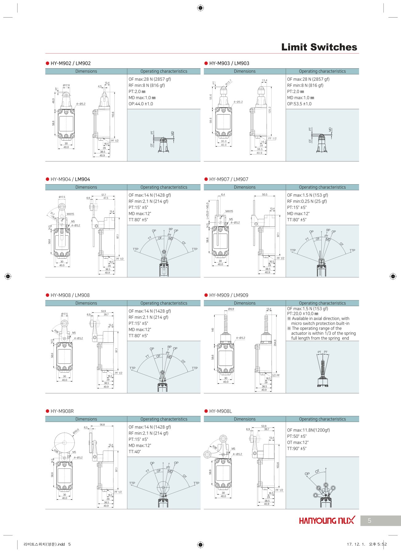Limit Switch HY-M900 / LM900 | Hanyoung NUX | Catalogue