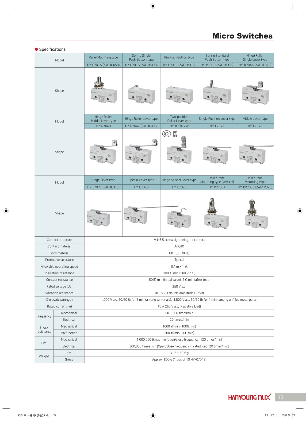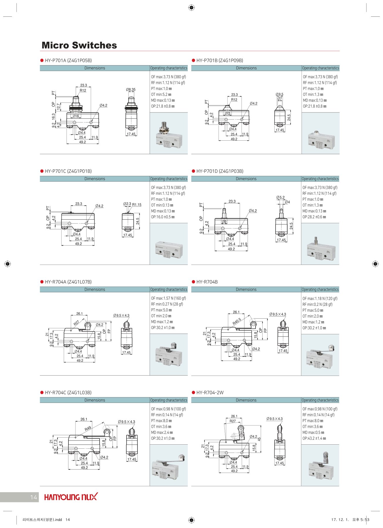 Micro Limit Switch - Công Tắc Hành Trình HY-700 | Hanyoung NUX | Catalogue