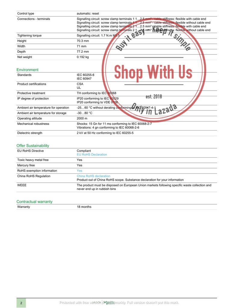 Tiếp điểm bảo vệ | 1 NO + 1 NC |