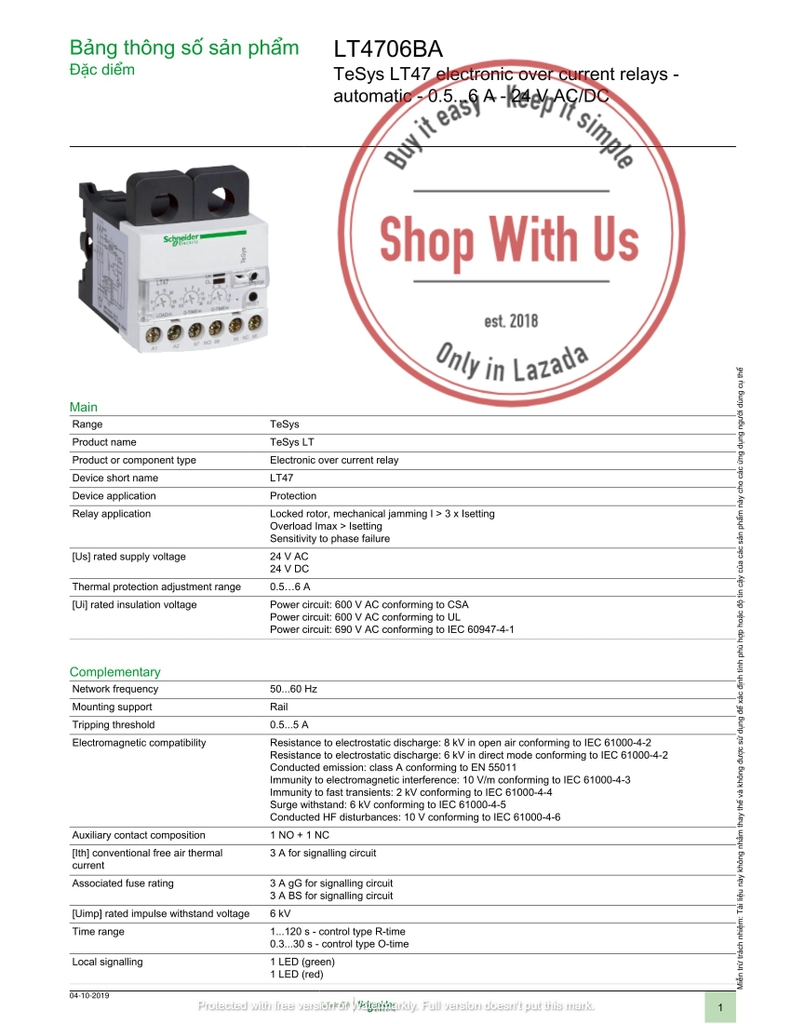 - Đáp ứng tiêu chuẩn IEC 60947-4-1.