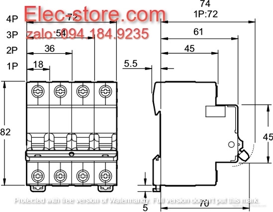 KHẢ NĂNG NGẮT NGẮN MẠCH ICN | Ph/N 230VAC 4500A, Ph/Ph 400VAC 4500A |